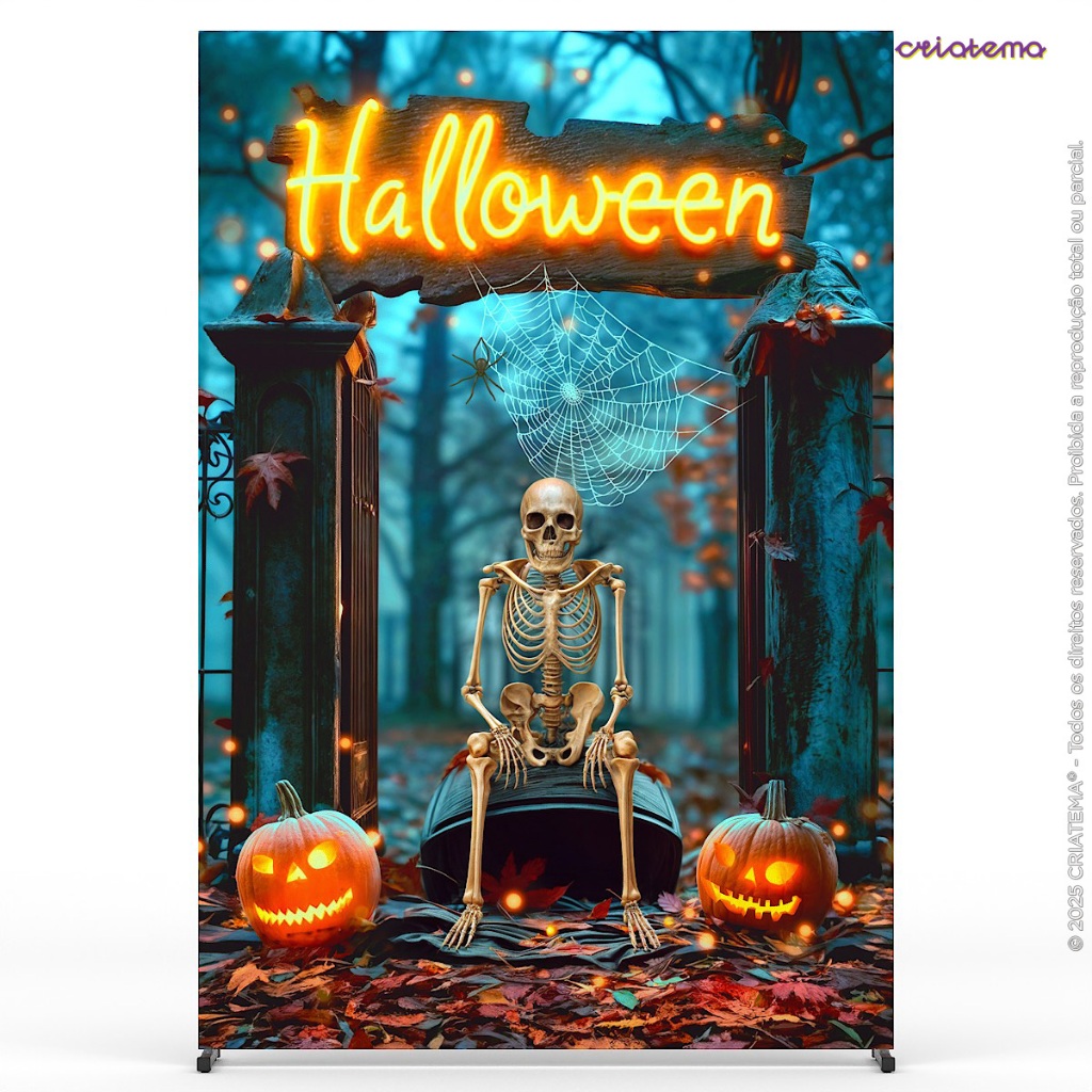 Painel de Festa Decoração Halloween Cemitério Retangular Lateral Sublimado Tecido 1,50x2,20 - ANV-3110