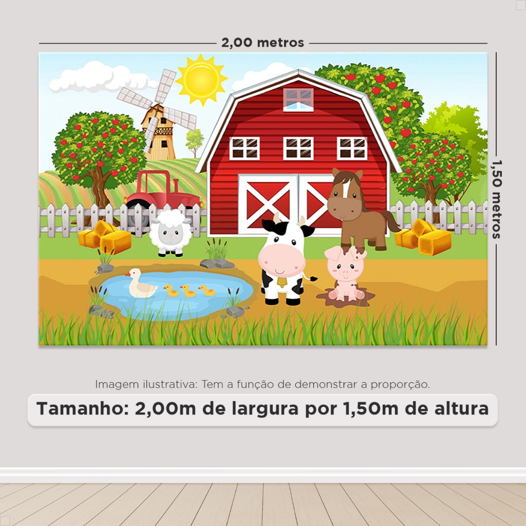 Painel De Festa Fazendinha Retangular Horizontal Sublimado 3D Em Tecido Monte fácil