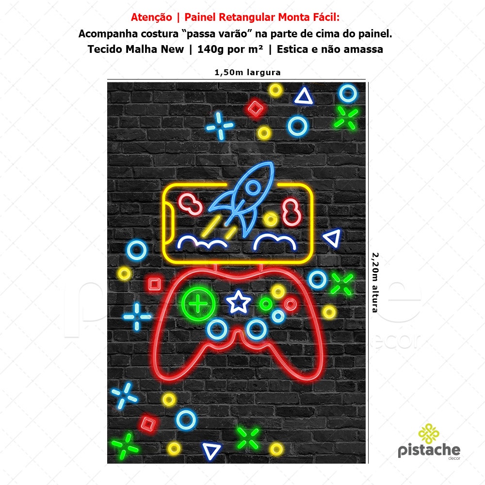 Painel de Festa Game Retangular Lateral Sublimado Em Tecido 1,50x2,20m