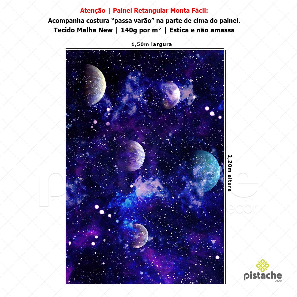 Painel de Festa Planetas Galáxia Retangular Lateral Sublimado Decoração Em Tecido 1,50x2,20m