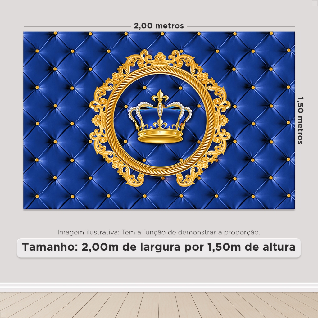 Painel de Festa Realeza Coroa Decorativa Retangular Horizontal Sublimado Em Tecido