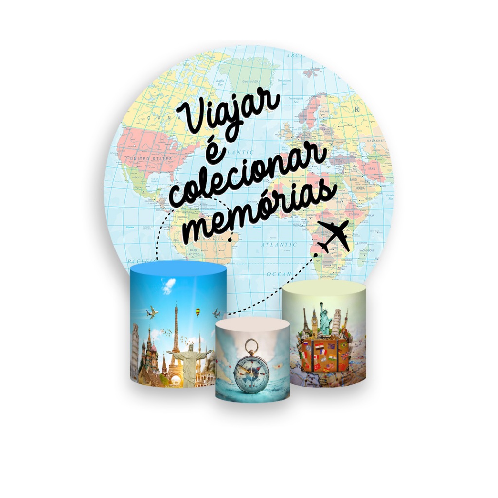 Painel De Festa Redondo + Trio De Capas Cilindro - Volta ao Mundo Viajar 010