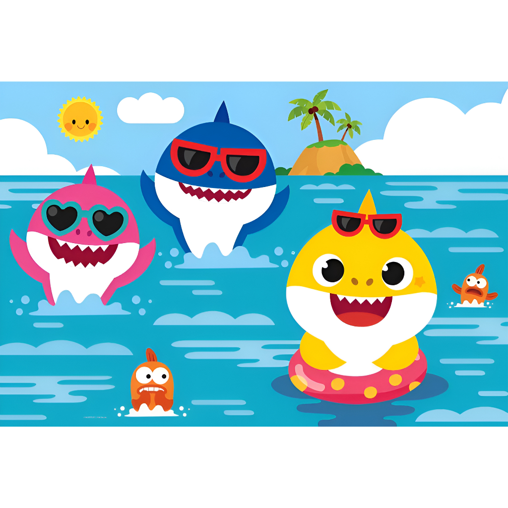 Painel de Festa Retangular BABY SHARK 2x2m Personalizado em lona fosca