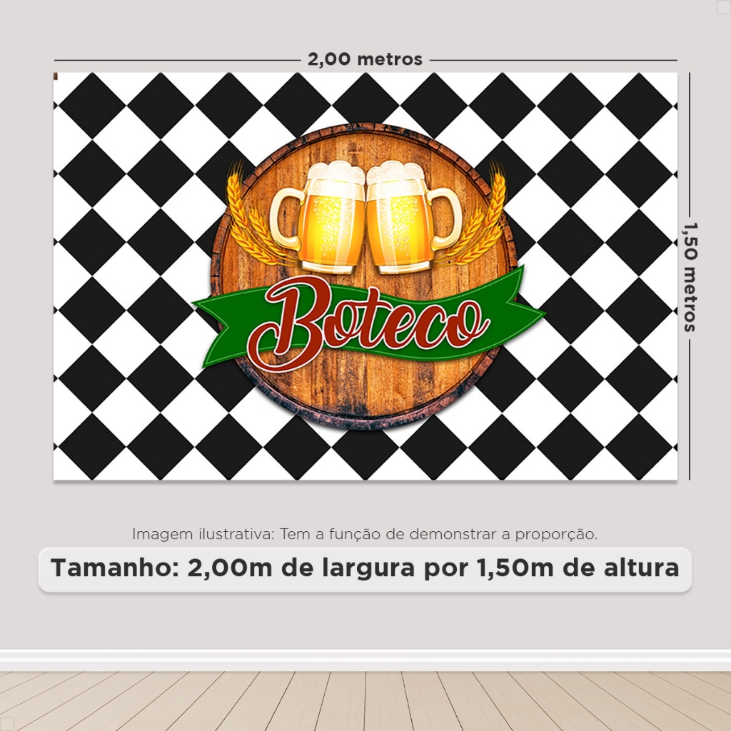 Painel De Festa Retangular Decoração Boteco Horizontal Sublimado 3D Em Tecido