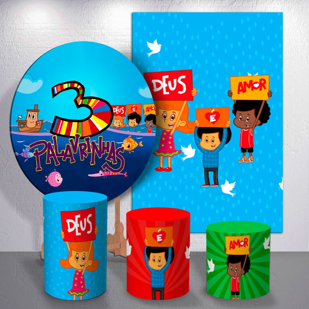 Painel De Festa Tema Religioso Deus é Amor Palavras Trio Cilindro Painel Redondo Retangulo