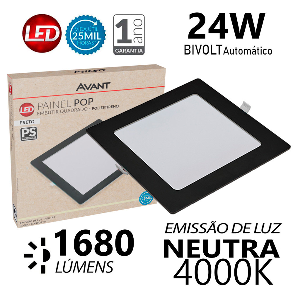 Painel de Led Avant Quadrado Preto 24W 28CM Luz Neutra Bivolt Instalação Embutir Iluminação Geral
