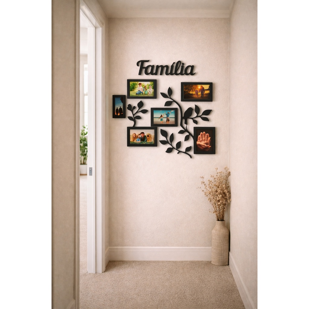 Painel Decorativo Família em MDF | Porta-Retratos de Parede com Galhos Decorativos para Fotos