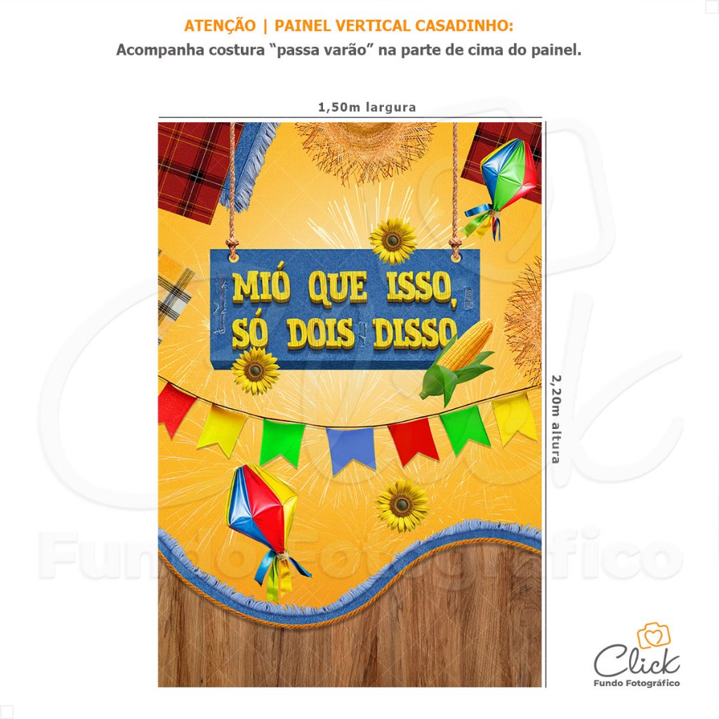 Painel Decorativo Festa Junina Arraiá Retangular 1,50x2,20 Vertical Sublimado 3D – V-179