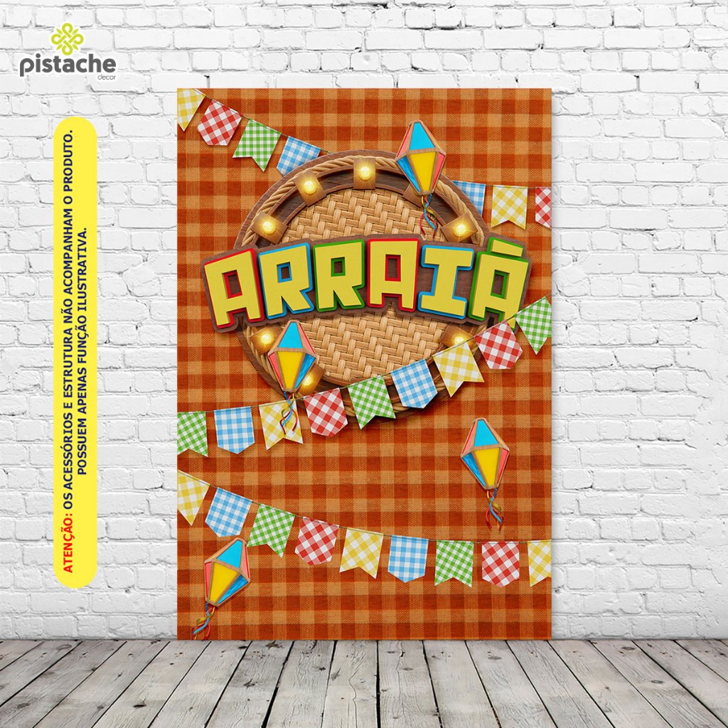 Painel Decorativo Festa Junina Bandeirinhas Retangular 1,50x2,20 Vertical Sublimado Arraiá Xadrez 3D – V-184