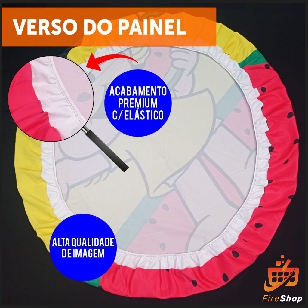 ATENÇÃO TODAS AS COMPRAS SÃO ENVIADAS EM ATÉ 24 HORAS ÚTEIS ALGUMAS COMPRAS PODEM SER DESPACHADAS NO MESMO DIA PAINEL REDONDO 50X50 ESSA E A MEDIDA REAL NAO CONFUNDAM LEIAM A DESCRIÇAO DESDE JA AGRADEÇO; ESPECIFICAÇÕES DO PRODUTO Os Painéis Redondos são produzidos com qualidade fotográfica em impressão sublimática digital de última tecnologia Estamos sempre atentos às novidades e tendência do mercado O material é Tecido Malha flexível Poliéster com elástano 240gml de ótimo caimento e não reflete luz O melhor disso tudo NÃO AMASSA Isso é o sonho de todo decorador Possui costura overlock nas laterais para não desfiar e elástico Apenas para Painéis Redondos e Capas de Cilindro para melhor ajuste Pode ser molhado ou lavado com água e sabão neutro evite ser exposto ao sol pois secam rapidamente As cores dos produtos podem variar de tonalidade em 15 devido resolução do monitor ou tela do celular mas nada que interfira na qualidade e beleza do mesmo Garantia contra defeito de fabricação SOBRE EFEITOS 3D 4K 8K E GLITTER São efeitos que NÃO podem serem visto à olho nu somente por trás de lentes de câmeras Exemplo quando vamos no cinema e tiramos o óculos fica turvo e aparentemente tremidas as imagens e assim são o mesmo com as imagens impressas Façam o teste se não conhecerem dos efeitos e visualize o quanto ficam lindas e maravilhosas e encante seu público alvo PAINEL REDONDO Não acompanha estrutura A medida é de 50 x50 ATENÇÃO CLIENTES Não fazemos alterações ou troca das imagens do anúncio Não aceitamos artes prontas inclusão de nomes idades e não fazemos ou deixamos exclusividade de imagens Compras com boleto levam de 2 à 3 dias úteis para liberação Caso tenha divergência com seu produto nos acione através dos canais de comunicação antes de efetuar devoluções e cancelamentos nos chame nas mensagens para buscarmos uma solução em conjunto