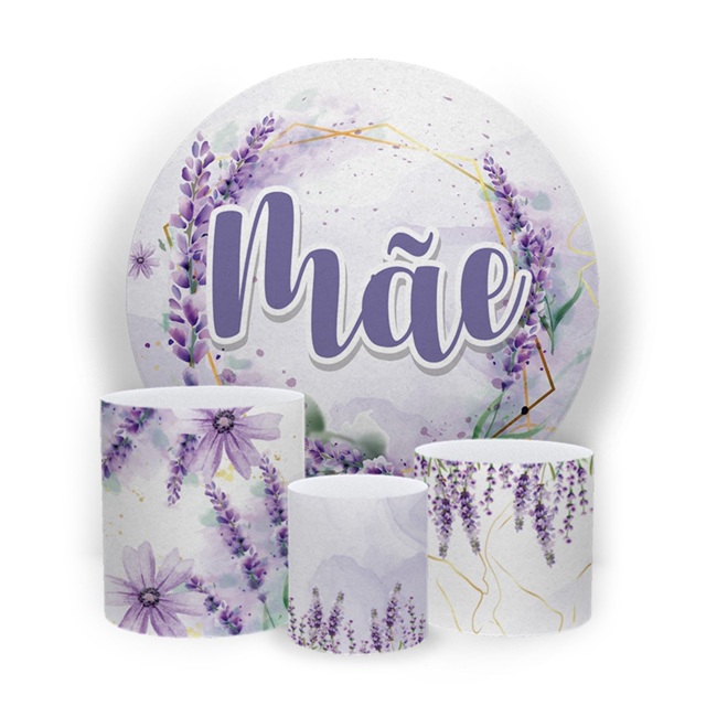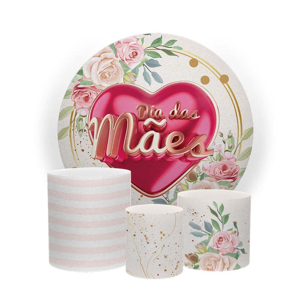 Painel Festa em Tecido Redondo 1,50x1,50 com Trio de Capas Cilindros Dia das Mães
