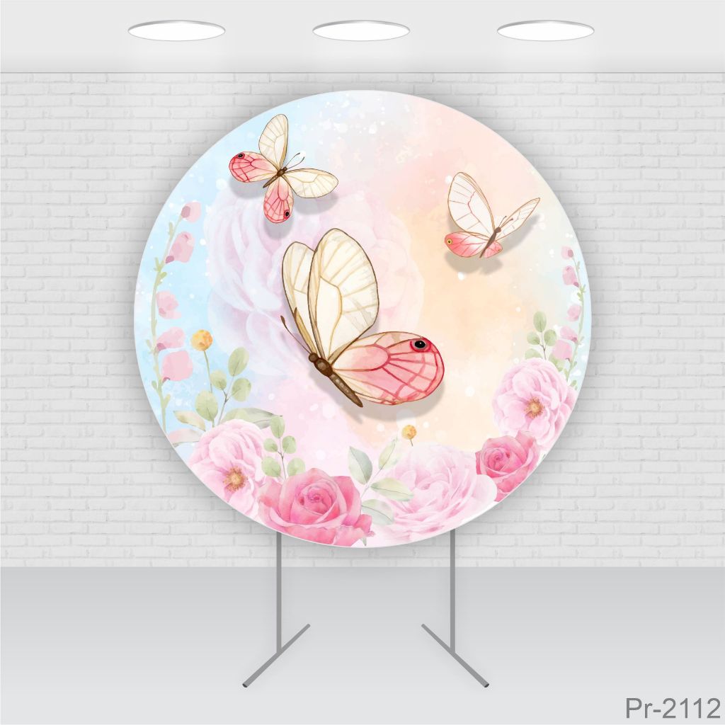 Painel Festa Redondo Borboletas Sublimado C/ Elástico - 1,50
