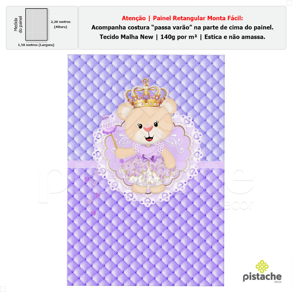 Painel Festa Retangular Ursa Realeza Vertical Sublimado Tecido 1,50x2,20