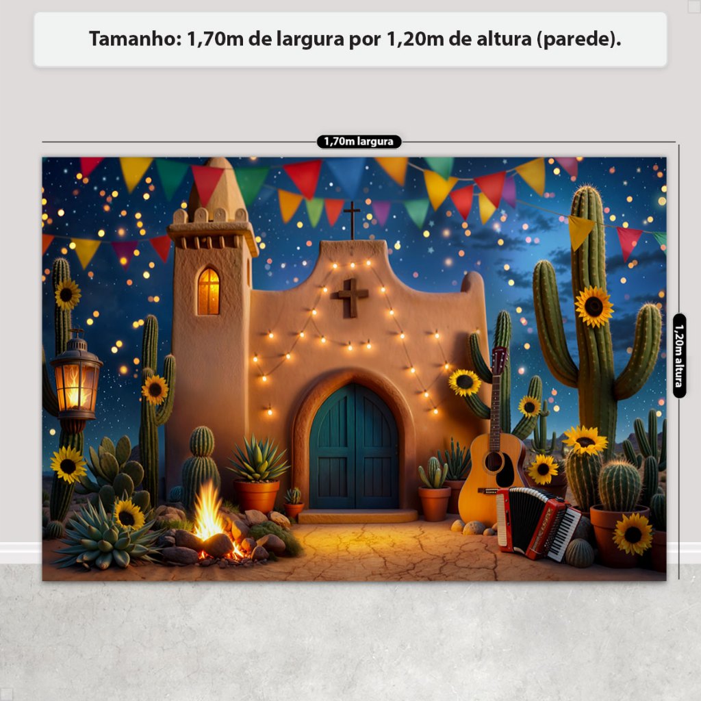 Painel Fundo Fotográfico Festa Junina Cenário Igrejinha Cordel Painel Tecido Sublimado - FJN-186