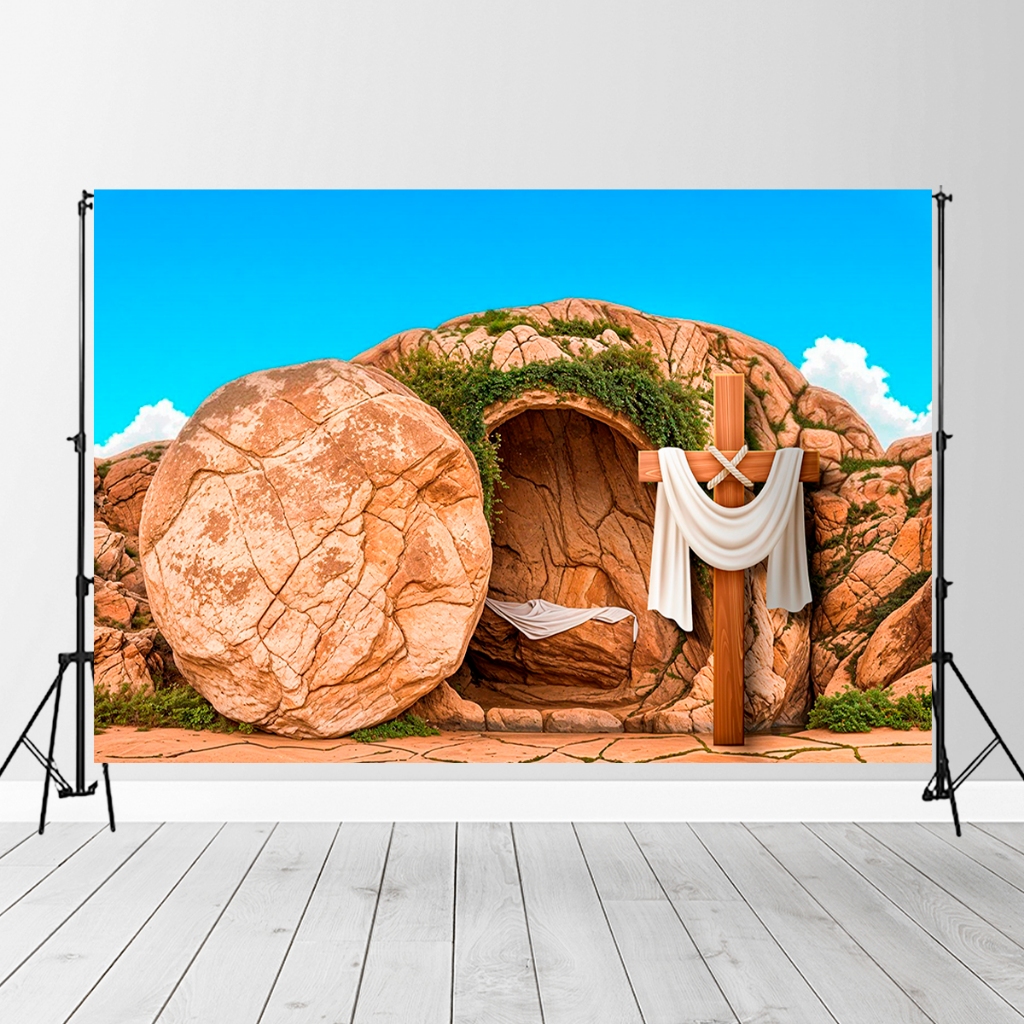 Painel Fundo Fotográfico Gigante Religioso Ele Vive Páscoa 3,00x2,00 Mt