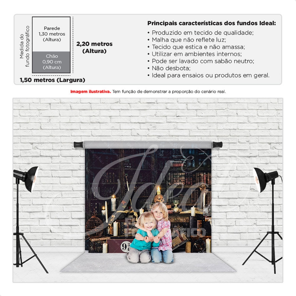 O PRODUTO CONTÉM O TAMANHO DE 150X220cm (150cm de largura x 220cm de altura) Todos os nossos Fundos Fotográficos Sublimados são confeccionados em tecido especial, com excelente acabamento e imagens nítidas que possibilitam fotos incríveis sem reflexos no resultado final. Por serem muito práticos, os fundos podem ser utilizados em estruturas como tripés (presos por garras) ou fixado em paredes e até mesmo placas de MDF com o auxílio de fita crepe ou dupla face (de formato largo, preferencialmente). Características: Tecido: Malha (estica e não amassa) Composição: 95% Poliéster + 5% elastano Gramatura: 140g m² Acabamento: Pode ser em overloque ou à laser, à depender da demanda. Ambos com acabamento perfeito que garantem sua durabilidade. ** Itens inclusos: 1 fundo fotográfico em tecido Malha ** Indicação de uso: Produção de fotos em estúdio fotográfico Informação complementar: As cores podem variar nas fotografias devido à qualidade da câmera fotográfica, ajustes/configurações da câmera, lente e iluminação do ambiente. Além disso, as configurações brilho e contraste do monitor ou celular onde a imagem está sendo visualizada, também podem dar a impressão das cores serem mais ou menos vivas, mais ou menos intensas. ** Todos os nossos produtos passam pelo processo de sublimação, sendo uma etapa onde passam por uma temperatura muito alta, podendo ter uma pequena variação em seu tamanho de até 5cm.** Nossos fundos fotográficos têm uma qualidade incomparável e é simplesmente incrível! Nosso tecido é maravilhoso, proporciona um toque suave e sem marcas de dobras, as cores são bem vivas e a nitidez da resolução incrível. Praticidade e economia de espaço, podem ser lavados, dobrados, guardados e é só esticar e arrasar nas fotografias. Possui acabamento impecável, não desbota e o caimento é perfeito! Uma combinação de qualidades especiais.