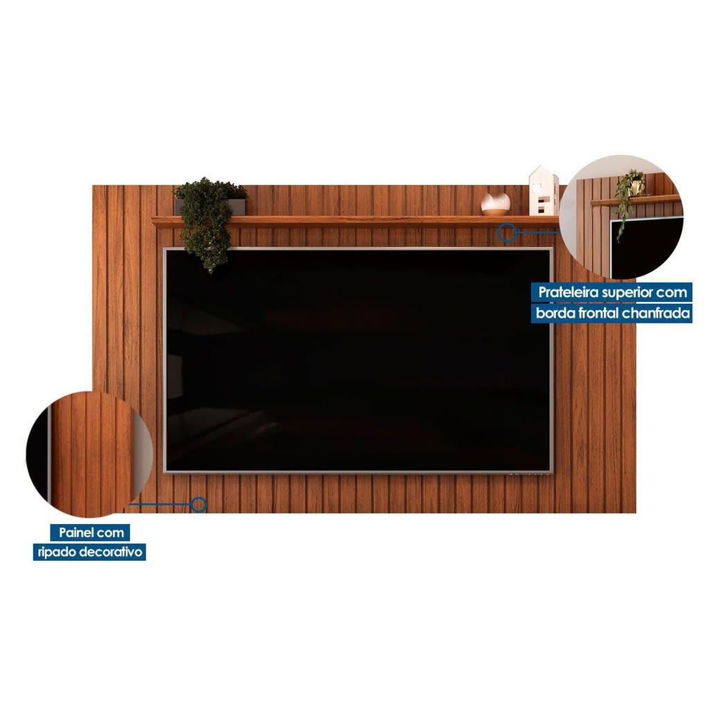 Painel Home p/TV até 65 Polegadas Lume Ripado c/ Prateleira 175x108cm Cedro - DJ Móveis