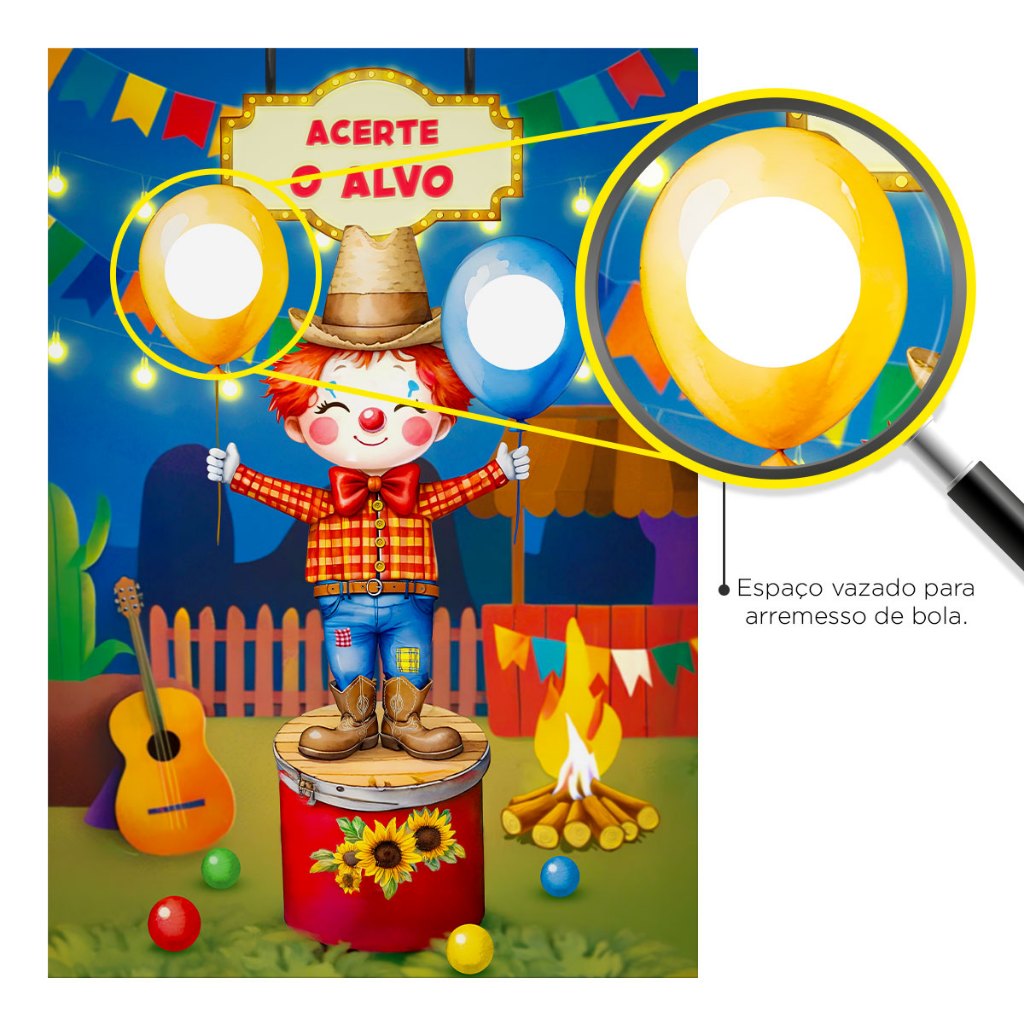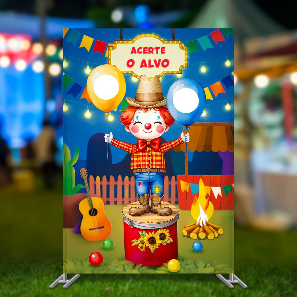 Painel Interativo Retangular Festa Junina Vazado Jogo Acerte o Alvo Decoração Sublimado Tecido 1,50x2,20 – V-178