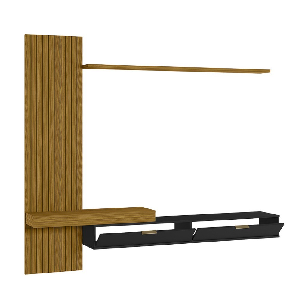 Painel Italy Ripado P/Tvs até 65" 180cm Tv na Parede Nicho C/Portas Basc Cedro/Preto - Olivar Móveis