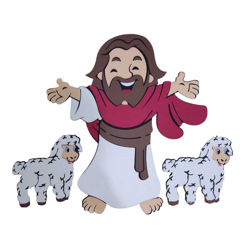 ✨ Jesus em EVA 60 cm + 6 Ovelhas em EVA 20 cm ✨ Encanto, ensino e fé em um só kit! Transforme o ambiente do ministério infantil, sala de aula, EBD ou espaço catequético com este lindo conjunto em EVA. Com um Jesus grande de 60 cm e 6 ovelhinhas de 20 cm, o kit chama a atenção das crianças, facilita a compreensão das histórias bíblicas e cria um clima acolhedor e educativo. 🌟 Benefícios Aprendizado visual e afetivo: estimula a atenção e a participação das crianças nas histórias bíblicas. Versátil: ideal para painéis, contação de histórias, cenários e atividades pedagógicas. Durável e seguro: EVA leve, macio e resistente, perfeito para o manuseio infantil. Impacto imediato: tamanho grande que valoriza a decoração e destaca o tema da fé. Praticidade: fácil de montar, transportar e guardar. 📌 Características Material: EVA de alta qualidade Medidas: Jesus: 60 cm de altura Ovelhas: 20 cm de altura cada Quantidade: 1 Jesus + 6 ovelhas Acabamento: colorido, detalhado e caprichado Indicação: ministério infantil, escolas, igrejas, EBD, catequese e decoração temática 👉 Encante, eduque e inspire com um painel que transmite amor, cuidado e os valores cristãos de forma lúdica e inesquecível. Ideal para quem busca beleza, significado e qualidade!