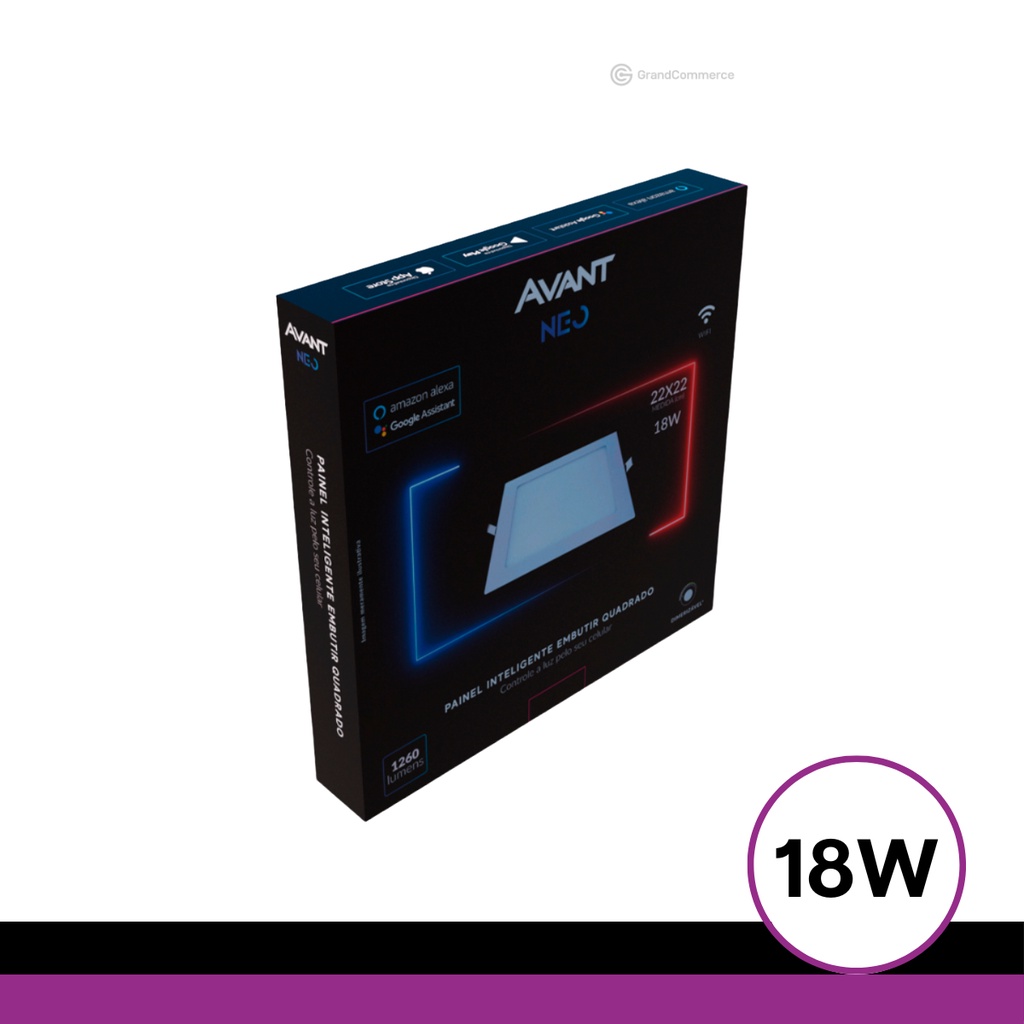 GRANDCOMMERCE - Uma empresa brasileira que atua há mais de 10 anos com importação, distribuição e revenda dos melhores produtos e fornecedores do Brasil e exterior. Está entre as maiores do segmento e é reconhecida pela qualidade de seus produtos e agilidade, com profissionais experientes e prontos para atender quaisquer necessidades com comprometimento, sendo uma grande parceira de seus clientes. Temos um grande número de vendas e um baixíssimo número de reclamações, pois tratamos nossos clientes com respeito. Logística/Sua compra 100% segura. Os produtos adquiridos conosco são postados em até 01 dia útil após a confirmação de compra por parte da plataforma e seguem assegurados pela transportadora até o recebimento por parte do cliente. A Linha Inteligente Wi-Fi Avant NEO se traduz no que há de mais moderno em iluminação, sendo ideais para quem precisa de uma iluminação versátil e moderna! Indicadas para ambientes internos como quartos, salas, cozinhas, escritórios e outros, você pode controlar a temperatura de cor que permite ser personalizada entre 2.700K a 6.500K ou ainda em mais de 16 milhões de cores com o Modelo RGB. A Linha NEO proporciona a iluminação ideal para o seu humor, seja para se concentrar ou relaxar. Controle tudo pelo app Avant ou por comandos de voz com a Amazon Alexa ou Google Assistente, criando cenas e automações para deixar a sua casa ainda mais moderna e inteligente. Ideal para compor a decoração de ambientes, promovendo também a economia de energia. Linha inteligente Avant NEO, você no controle! Disponível na Google Play e Apple Store.