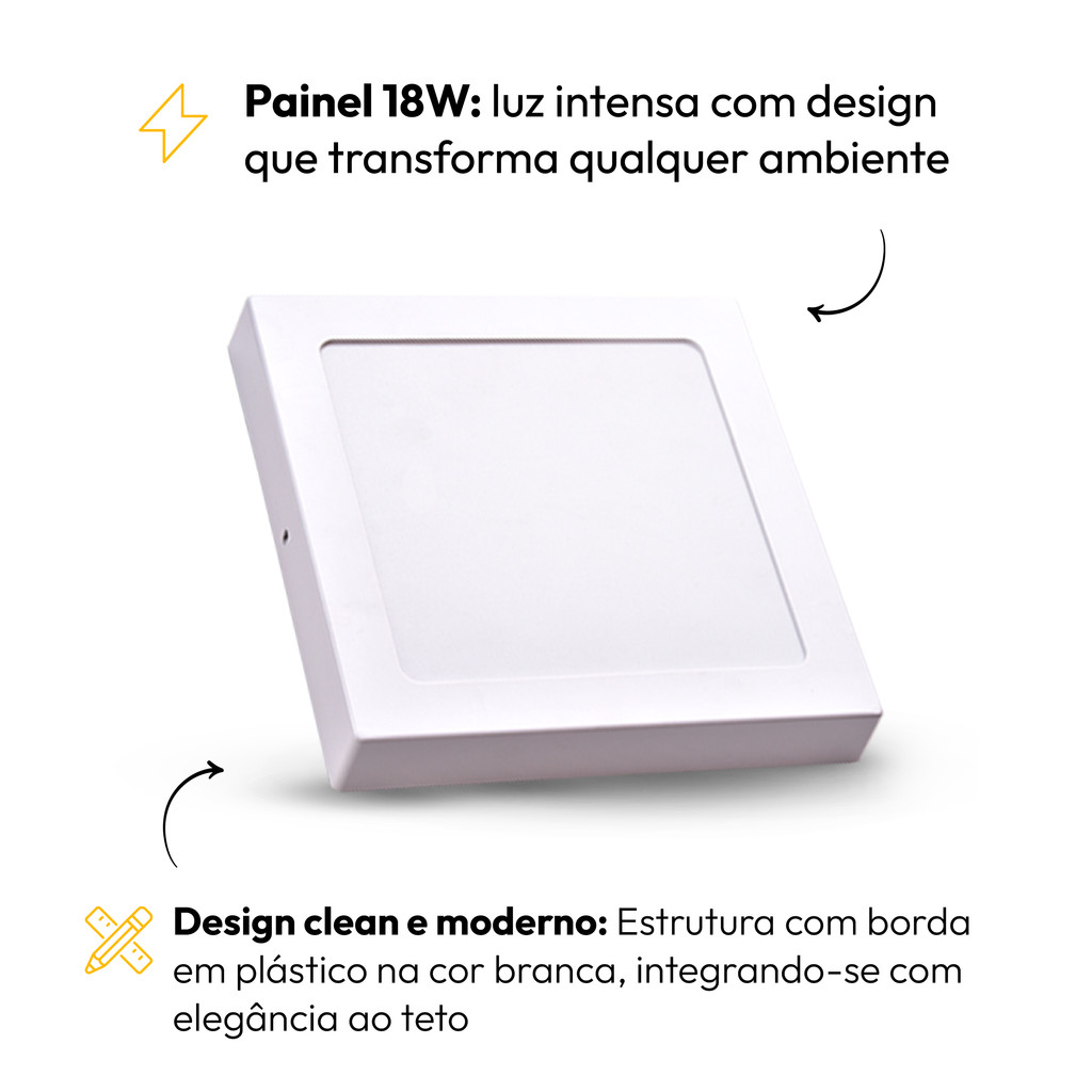 Painel Led Plafon 18w 6500k Branco Frio Bivolt Sobrepor Quadrado Branco Cod: ALUT000505 Alut By Avant