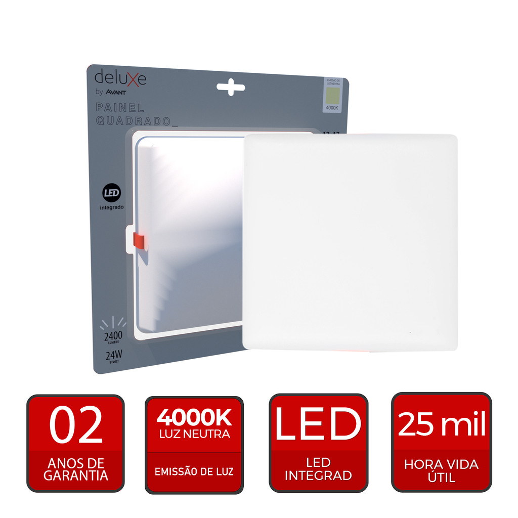 Painel led Plafon Flat Embutir 24w 4000k Branco Neutro 110v/220v Bivolt Quadrado Branco Cod:344210879 Deluxe By Avant