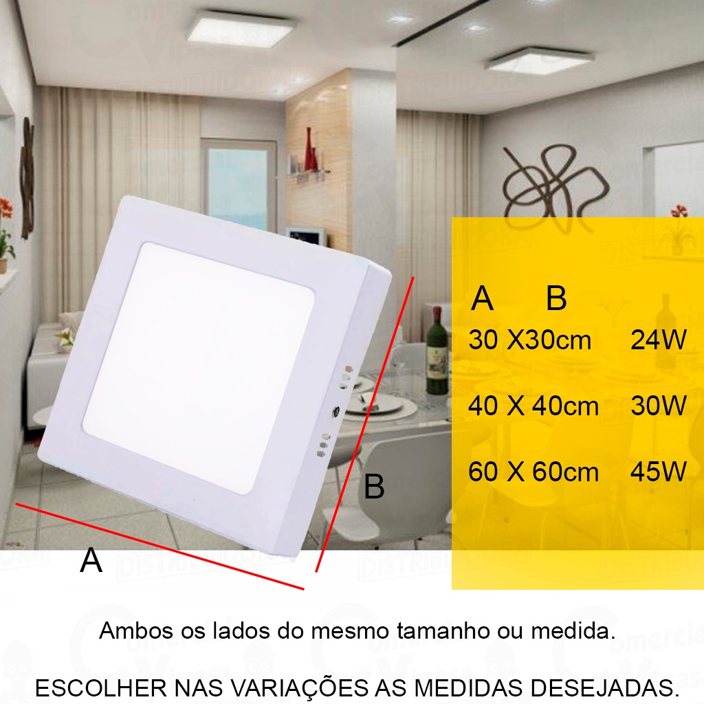 Painel Led Plafon Quadrado Sobrepor 24W - 45W De Potência Branco Frio Design Moderno Avant Bivolt