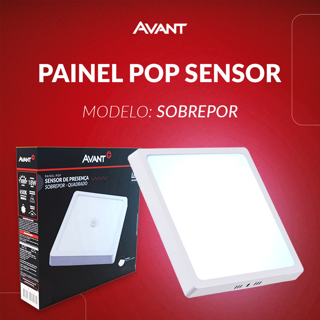 Painel Pop Luminárias Led com Sensor de Presença O Painel POP com sensor de presença possibilita a otimização do consumo de energia, sendo direcionado aos ambientes que necessitem de iluminação somente quando há circulação de pessoas. • PROPRIEDADES - Disponível nas potências de 18W ou 24W. - Aplicação: Opção de sobrepor ou Embutir - Formato: Quadrado - Material: Corpo em alumínio, difusor em plástico, corpo do driver em plástico. - Fluxo luminoso constante em toda faixa de tensão. - Tipo de instalação: Embutir e Sobrepor. - O produto permanece aceso por 40 segundos após detectar movimento • CARACTERÍSTICAS DE FUNCIONAMENTO - Temperatura ambiente: -5°C a 40°C. - Tensão nominal: 100V a 240V. - Fator de potência:=0,50 - Baixo consumo de energia. • Medidas: - 18w: 22x22cm - 24w: 29x29cm * ATENÇÃO: Na instalação do transformador eletrônico, certifique-se de que o mesmo não ficará em contato com a luminária, pois toda a base da luminária funciona como dissipador de calor, o que pode causar danos e interferências no funcionamento do transformador. * Garantia Oficial: A Avant oferece garantia de 12 meses para defeitos de fabricação em seus produtos. Para obter mais informações sobre a garantia, consulte o manual do produto ou entre em contato com o atendimento ao consumidor da Avant. Sobre a Avant: A Avant é uma empresa líder no desenvolvimento e fabricação de soluções de iluminação LED de alta qualidade. Com foco na inovação, a Avant busca oferecer produtos eficientes, duráveis e ecologicamente corretos. A marca se destaca pela qualidade de seus produtos, design moderno e atendimento personalizado, proporcionando a melhor experiência para seus clientes.