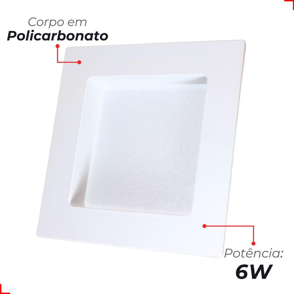 Painel Led Recuado 6w Quadrado 4000k Comfort Branco Neutro 12cm 110V/220V Bivolt Branco Fosco Cód: 908010877 - Deluxe