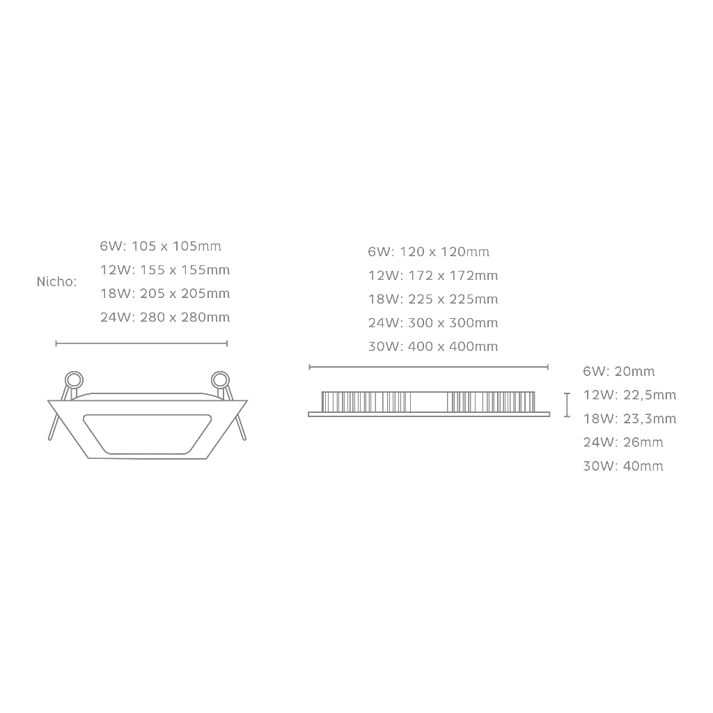 Painel Plafon Led Branco 18w Embutir Quadrado 6.500K (Branco Frio) A Linha de Painel Pop Embutir é ideal para ambientes residenciais e comerciais por ser compacto e fácil de instalar. Feito em material poliestireno super resistente, design compacto e leve, não amarela. Pode ser fixado em forros de gesso, forros de madeira, forros de pvc, forros de isopor. Embalagem: 1 Painel de led (em material Poliestireno) 2 Molas para fixação DRIVE EMBUTIDO **OBS.: o painel não necessita de drive/fonte, basta efetuar a instalação diretamente na rede elétrica. Indicado que seja feito por um profissional.** Informações técnicas: Potência: 18W Equivalência: 2 x FCE 20W Tensão de entrada: 100 - 240V Dimensões: 22 x 22 x 2,3cm Nicho: 20,5 x 20,5cm Corrente (127/22OV): 283mA / 164mA Temp. de operação: -20°C -+40°C Frequência: 50/60Hz Temperatura de cor: 6500K Fluxo luminoso: 1.440 Im Eficiência luminosa: 80lm/W Grau de Proteção: IP 20