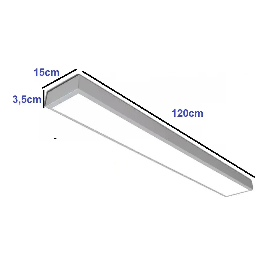 Especial para muitos tipos de teto. Essa lâmpada irá deixar seu ambiente muito mais bonito e com iluminação BRANCO QUENTE 3000K, BRANCO NEUTRO 4000K, BRANCO FRIO 6500K. Além de economizar até 80% de energia. É uma ótima opção para iluminar ambientes internos, como sua casa e/ou escritório, entre outros. Aplicação: Sobreposto em forros (gesso, modulares, forros de madeira, PVC ou similares) e tetos em geral. #Ficha técnica - Potência (W): 48W - Temperatura da Cor (K): 3000 ou 4000 ou 6500 - Cor da luz: Branco Frio - Formato: RETANGULAR - Acabamento: Alumínio - Alimentação: Bivolt - Durabilidade da Lâmpada: 25.000 hrs - Lúmens: 3.840 lm - IRC (Índice de Reprodução de Cor): 80 - Dimensões (CM): 15x120X4