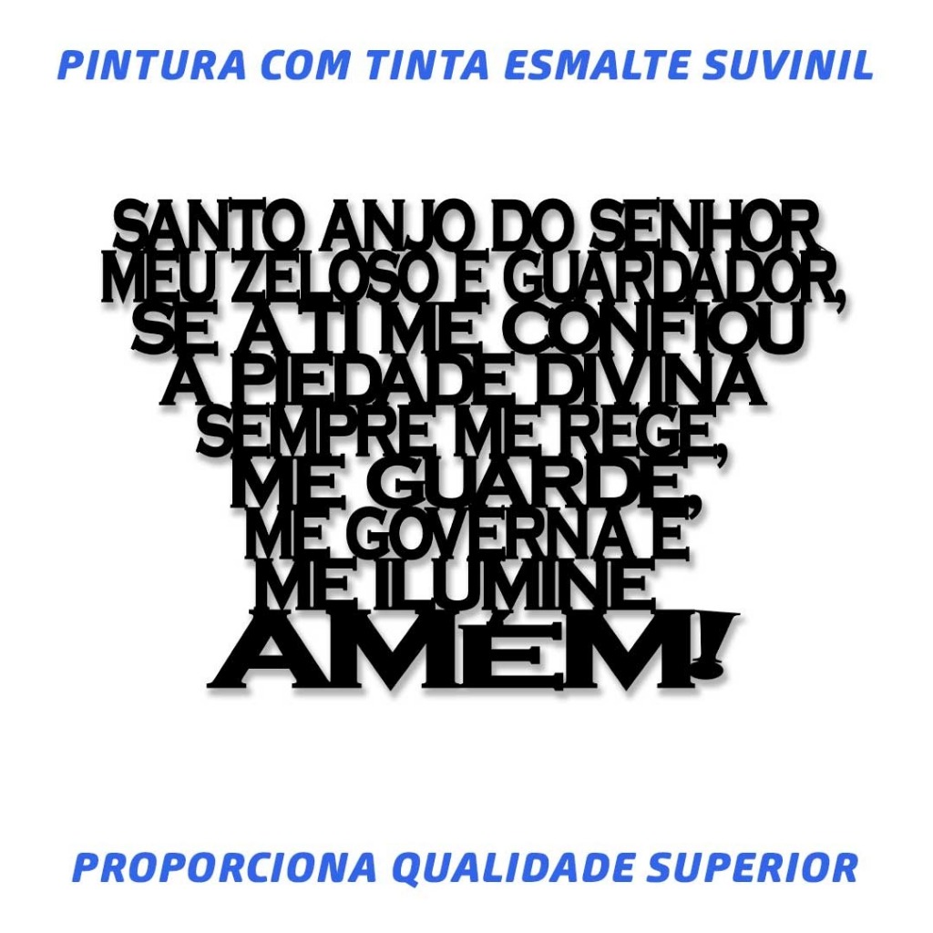 📦 Medida do Painel de Oração do Santo Anjo: - 28 cm de altura x 42 cm de largura - Material: Madeira MDF 3 mm Premium; - Cortada a laser; - Cores: Preto. Decore sua casa com o lindo Painel Oração Pai Nosso! Este quadro em MDF 3mm vazado destaca-se em qualquer ambiente, proporcionando um toque especial à sua decoração. O quadro possui um acabamento premium, sendo pintado de preto fosco e utilizando tinta à base de água da Suvinil, garantindo alta qualidade sem deixar cheiro. **Características:** - Acompanha dupla face para fácil instalação, sem a necessidade de furar a parede. - Quadro pintado de preto fosco. - Tinta à base de água da Suvinil, sem cheiro. - Fácil instalação com dupla face. - Material resistente em MDF 3mm. - Tamanho: 28 x 42 cm. **Como instalar:** 1. Limpe o local com um pano umedecido com água. 2. Retire o plástico da dupla face. 3. Cole na parede e pronto! **Especificações:** - Material: MDF 3mm **Garantia:** Produto bem embalado para garantir que chegue ao cliente em perfeito estado. Confira as fotos do anúncio para ver mais detalhes. Transforme seu espaço com esta peça de decoração única. Adquira já o seu! 💖 Sua Satisfação é Nosso Compromisso: A satisfação do cliente é nossa prioridade. Cada peça é criada com amor e dedicação, visando não apenas decorar, mas também encantar. Estamos aqui para tornar seus espaços mais especiais e memoráveis. OBS: O ENVIO E TOTAL E EXCLUSIVO DA PLATAFORMA SÃO ELES QUE ENCAMINHAM OS PRODUTOS PELA TRANSPORTADORA PRÓPRIA DELES !!
