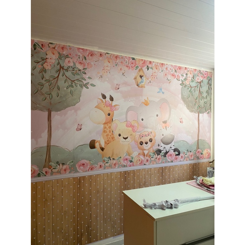 Painel Papel de Parede Autocolante Personalizado Amiguinhos Safari Decoração Para Quarto