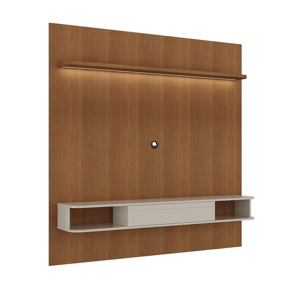 Painel para TV 1,83m até 75 pol com LED, Nichos, Porta Basculante Cinamomo/Off White Belluno Cinamomo/Off White