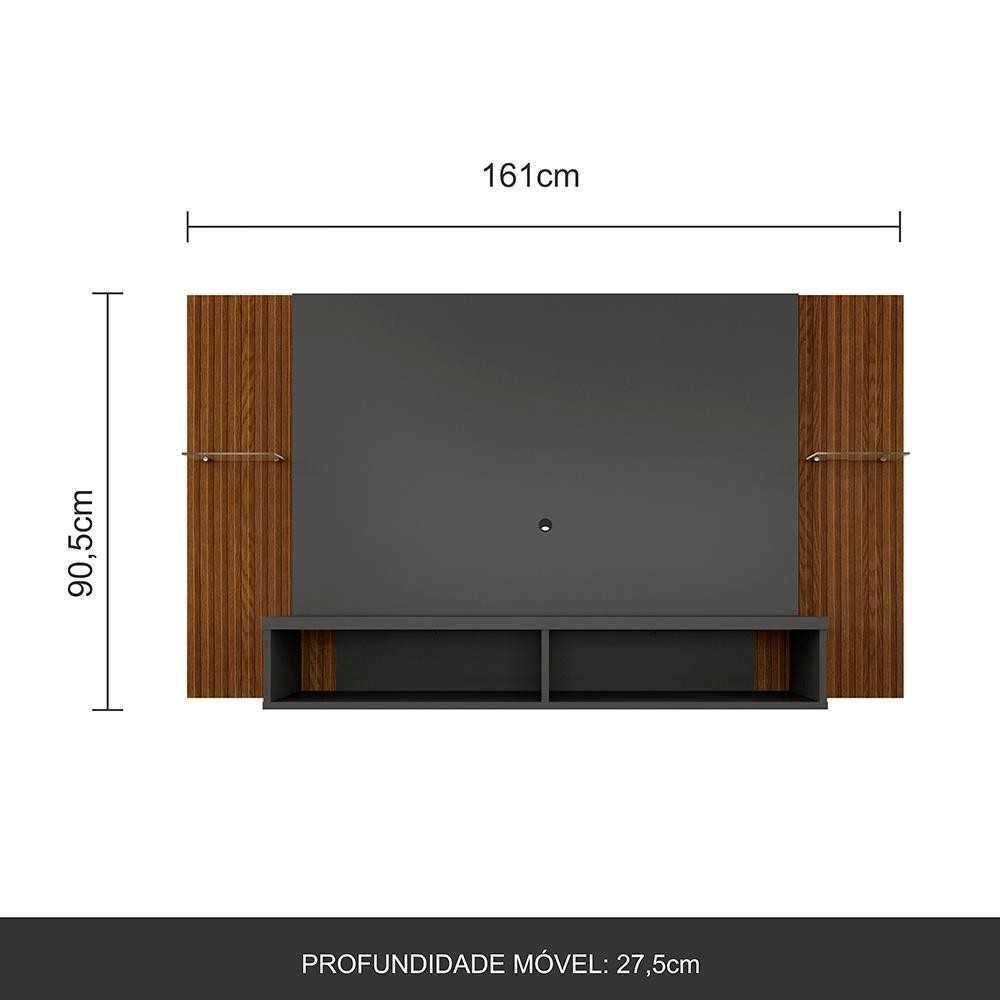 O Painel Alasca para TV 43” é uma opção que traz toda a qualidade, que você não abre mão e toda a parte decorativa que completa o ambiente e deixa tudo mais charmoso. Medida do Painel: - Medida do painel montada: AxLxP: 90,5CM x 161CM x 27,5CM Detalhes Técnicos Do Painel: - PAINEL PARA TV ATÉ 43” (POLEGADAS) - Material Painel: MDP 12 E 15MM - Material do Nicho: MDP 25MM - Acabamento: Pintura U.V Texturizada - Peso Suportado do nicho: 15KG - Peso Suportado prateleira de vidro: 1kg - Espessura do vidro: 4MM - Tonalidade: Grafite/Freijó Ripado (acabamento em 3D) - Fixado da Parede: Fixado com régua (MDP 15MM) - Estruturado com material de altíssima qualidade, evitando fungos e mofo. - Não utilizar suportes articulados. Conteúdo da Embalagem: - 01 Painel -Acessórios para montagem - Manual de Montagem Observações Importantes: - Imagens ambientadas meramente ilustrativas, objetos decorativos não compõe o produto; - Produto novo, garantia somente para defeitos de fabricação: 3 meses; - Não realizamos entregas em zonas rurais, via caminhos fluviais e distritos, NÃO ACEITAMOS CEP GERAL; - Não trabalhamos com entrega agendada. O recebedor deve ter mais de 18 anos. O valor do frete não inclui: subida de escada, elevador ou lançamento de produto, em condomínio residencial a entrega é feita somente até a portaria. As entregas são realizadas em dias e horários comerciais; - Ao receber o produto observe se a embalagem está em perfeita condição. Confira atentamente a quantidade de volumes; - Produto entregue desmontado. É responsabilidade do cliente a montagem/instalação do produto, inclusive despesa para sua realização. Recomendamos a contratação de um profissional especializado; - Evitar a exposição direta à luz solar e à umidade. Limpar com pano macio e seco, não utilizar produtos químicos; - A cor do produto pode variar de acordo com o monitor, a iluminação do ambiente ou sua percepção visual.