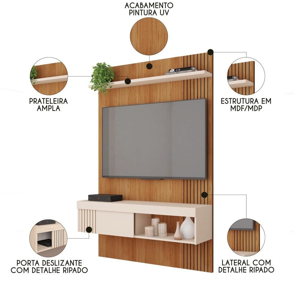 Painel para TV 45 Pol com Bancada Suspensa 120cm Jade Freijó/Off White - Caemmun