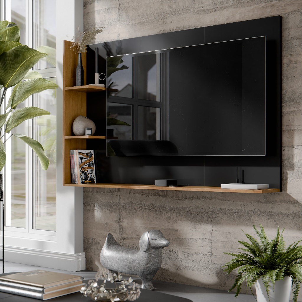 Painel Para TV 50 Polegadas Retro Nicho e Prateleira Rack Suspenso Modelo Berlim - Quality Móveis