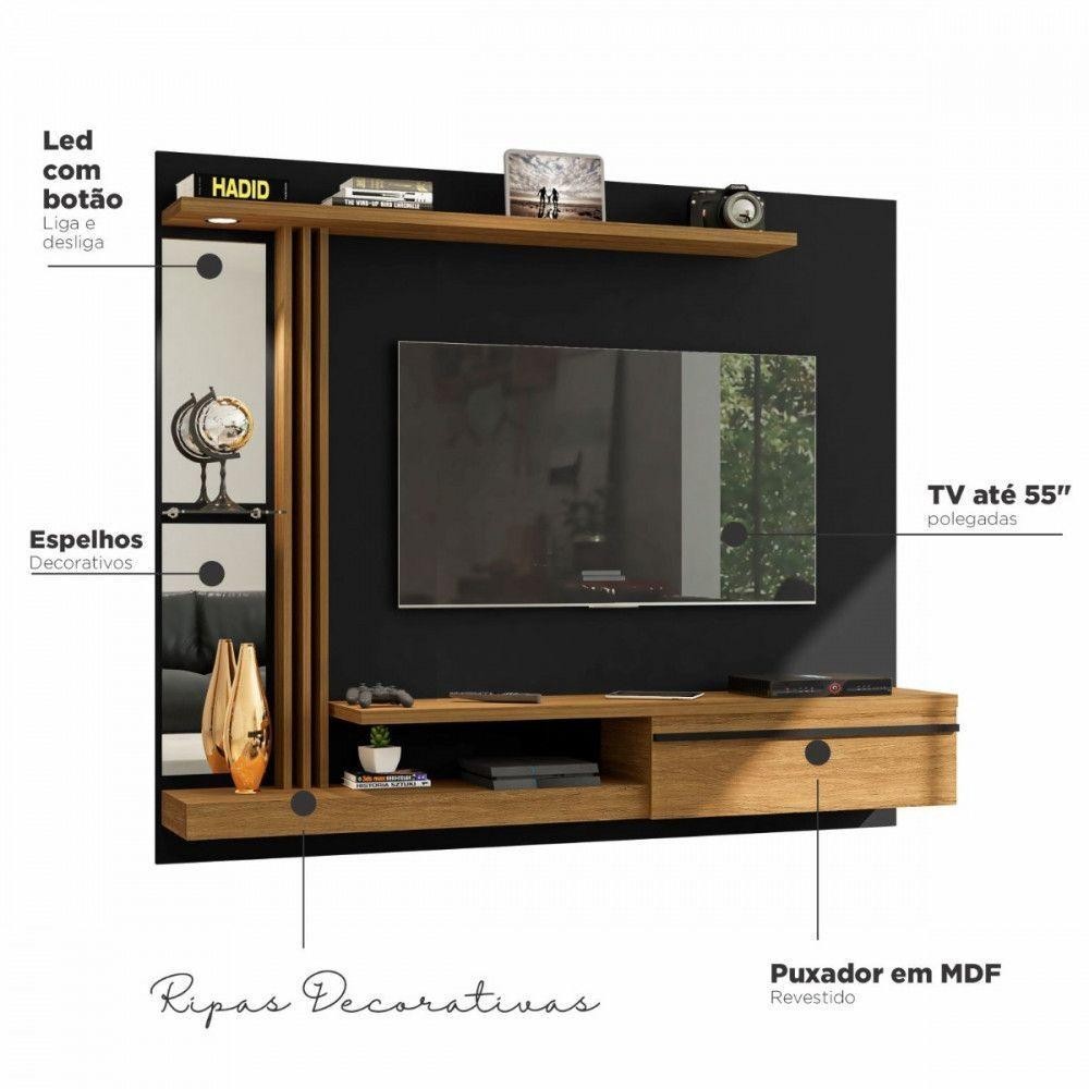 Painel Para Tv 55" Denver Bechara Preto Fosco C/Cinamomo