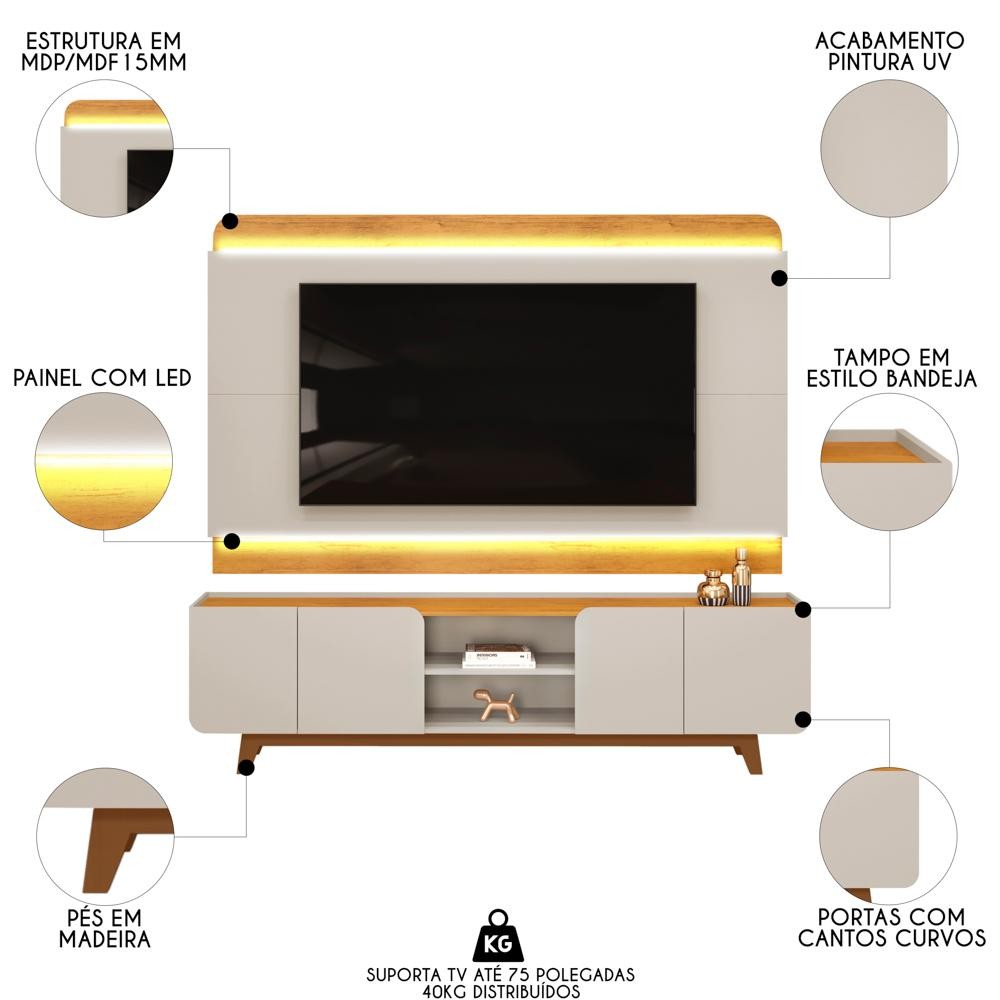 Painel Para TV 75 Pol e Rack Bancada Com LED 220cm Collie D04 Cedro/Bali - Mpozenato