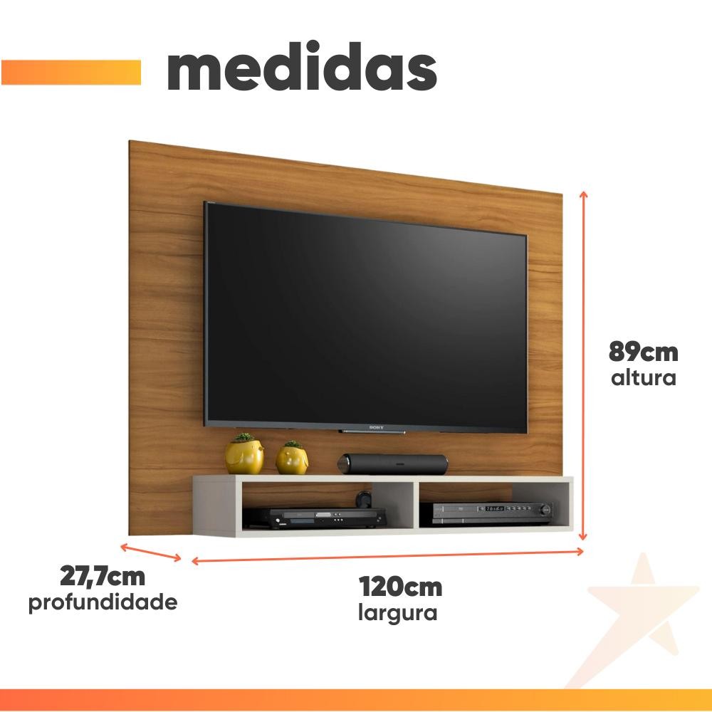 O Painel Eros para TV de 49 polegadas da Notável Móveis é a escolha perfeita para quem busca otimizar o espaço sem abrir mão de estilo. Com seu design compacto e funcional, ele se adapta facilmente a qualquer ambiente, aproveitando ao máximo cada cantinho da sua casa. MEDIDAS [ A ] = 89 cm [ L ] = 120 cm [ P ] = 27,7 cm PESO: 14,4kg SUPORTA ATÉ: 57kg SUPORTA TV DE ATÉ: 49 Polegadas MEDIDAS DO ESPAÇO PARA TV: 73x120cm Características MODELO: Painel Para TV Até 49 Polegadas Com Nicho Eros MARCA: Notável COR: Freijó / Off White MATERIAL: MDP com 12mm e 15mm de espessura PINTURA: UV (Ultravioleta) ACABAMENTO: Brilho e Fosco PORTAS: Não possui GAVETAS: Não possui POSSUI SUPORTE PARA A TV: Não possui OBSERVAÇÃO: Produto necessita fixação na parede INSTRUÇÕES DE CUIDADO: Para maior durabilidade, recomenda se que a limpeza dos móveis seja feita da seguinte forma: Nas partes externas (portas, laterais e frente de gaveta) e internas, a limpeza deverá ser feita com pano limpo e levemente umedecido em água e sabão neutro. Em seguida, deverá ser passado um pano limpo e seco. SISTEMA DE MONTAGEM: Parafusos e cavilhas GRAU DE DIFICULDADE DE MONTAGEM: Fácil GARANTIA: 3 meses A Esplanada Móveis se responsabiliza pela entrega dos produtos adquiridos até a porta de entrada ou portaria do endereço indicado, se a portaria do condomínio permitir, as entregas são efetuadas no piso térreo e é de responsabilidade do cliente a locomoção da mercadoria até seu apartamento ou casa. Confira as dimensões do produto e certifique-se de que estão adequadas aos elevadores, portas e corredores do local da entrega. Não fazemos a montagem, desmontagem do produto e/ou portas e janelas, transporte pela escada ou içamento pelo lado de fora do prédio. Não está incluso no serviço de entrega o deslocamento até o interior do apartamento, com ou sem elevador, ou deslocamento em locais de difícil acesso como escadarias. Caso o cliente necessite de entrega dentro das dificuldades mencionadas, deverá entrar em contato para análise e cotação do valor do serviço. Certifique-se de tudo antes de finalizar a compra, evitando assim futuros desagrados ou imprevistos com a entrega.