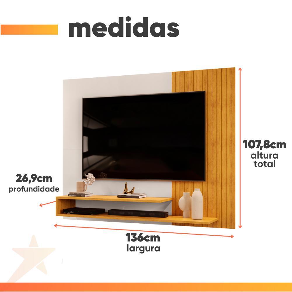 O painel Gael é ideal para valorizar sua sala com estilo e funcionalidade. Com acabamento em pintura UV de alta qualidade, oferece excelente resistência ao desgaste, e mantém o acabamento impecável por muito mais tempo. O detalhe frisado autêntico traz textura, personalidade e modernidade ao design, adicionando modernidade e charme ao ambiente. As prateleiras inteligentes oferecem espaço extra para organizar seus aparelhos ou objetos de sua preferência, mantendo tudo ao alcance e bem posicionado. E o melhor, suporta TVs de até 50 polegadas, garantindo proporção ideal e ótima centralização da tela. Elegante, prático e de ótimo gosto o painel Gael que transforma sua sala. MEDIDAS PAINEL: A = 107,8 cm L = 136 cm P = 26,9 cm MEDIDAS PRATELEIRAS: L = 113,5 cm inferior. / 82,2 cm superior. P = 24,2 cm PESO SUPORTADO: 40 kg PESO: 18,30 kg NICHO SUPORTA ATÉ: 5 e 10 kg IDEAL PARA TV DE ATÉ: 50 Polegadas Características MODELO: Painel Para TV Até 50 Polegadas Detalhe Frisado Com Prateleiras Gael MARCA: DJ Móveis PINTURA: UV de alta qualidade ACABAMENTO: Melamina MATERIAL: MDP/MDF ESPESSURA DO MATERIAL DA ESTRUTURA: 12 mm e 15 mm PRATELEIRAS: 2 ESPAÇO PARA PASSAR FIOS: Sim DIFERENCIAL: Acabamento pintura UV de alta qualidade / Detalhe frisado autêntico / 2 prateleiras para melhor armazenamento / Para TV?s até 50 Polegadas. INSTRUÇÕES E CUIDADOS: Para maior durabilidade, recomendável que a limpeza dos móveis seja feita com pano limpo e seco. Não usar produtos químicos ou abrasivos. GARANTIA: 3 meses pelo fabricante. Importante sobre a entrega: A entrega é realizada até a portaria ou porta de entrada do endereço indicado, desde que o acesso seja permitido. Para locais com portaria, a entrega será feita no piso térreo. Não realizamos montagem, desmontagem, transporte por escadas ou içamento. É responsabilidade do cliente verificar se as dimensões do produto são compatíveis com portas, elevadores e corredores. Evite imprevistos: confira todos os detalhes antes de concluir sua compra.