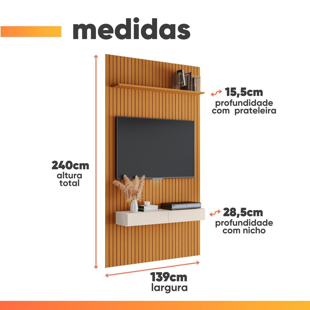 Painel para TV até 55 Polegadas 1,39x2,40m Ripado com Nicho Arbo Cedro/Off White EDN