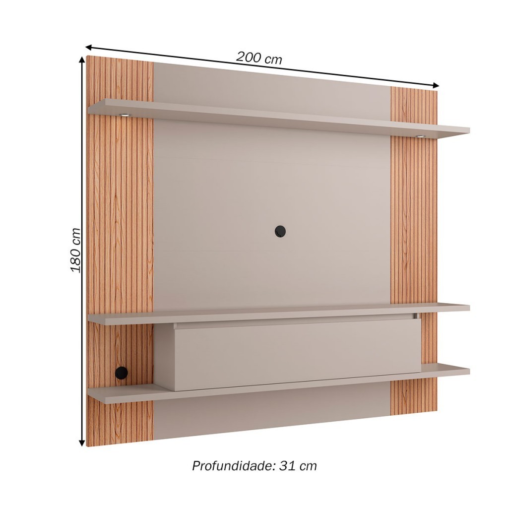 Dimensões: - Altura: 180,00 cm - Largura: 200,00 cm - Profundidade: 31,00 cm - Peso: 68,000 kg Descrição: O(a) Painel para TV Até 60 Polegadas 1 Porta com Led Grafite/Brise - Quiditá Móveis é produzido em MDP na escala de brilho Semi-Brilho, e possui um grau de dificuldade de montagem: Médio. Seu revestimento/acabamento é: Finish Foil. Infelizmente a Loja não oferece serviço de montagem, deixamos essa informação bem clara em todas as nossas páginas de produto. Onde especificamos que os móveis chegarão desmontados, e que a montagem fica por conta do cliente. Como não oferecemos esse serviço não embutimos o mesmo no preço dos produtos, ou seja, maior economia para você! Todos os nossos móveis também acompanham o manual de montagem, e caso você queira, pode realizar a montagem você mesmo, sempre especificamos os graus de montagem dos produtos. Nos casos de grau baixo e médio, com pouco ou nenhum conhecimento, você mesmo pode efetuar a montagem, e fazer essa economia. Apenas nos graus de montagem alto, recomendamos a contratação de um montador com experiência, visto que são montagens mais complicadas. A montagem é feita com Parafusos, cavilhas e Minifix.. Este móvel é indicado para que seja utilizado no(a) Sala de Estar, dando um toque especial no cômodo de sua casa. Para que você mantenha seu produto sempre em ótimo estado, recomendamos que use apenas um pano seco ou levemente umedecido, sem o uso de quaisquer produtos abrasivos. A Loja garante aos clientes, 90 dias de garantia nos produtos, porém, recomendamos que entre em contato com o fornecedor/marca do produto, pois o mesmo(a), pode garantir um prazo maior de garantia. Lembrando ainda que: quaisquer objetos decorativos que aparecem nas imagens, não acompanham o produto. Características: - Espessura da Estrutura: 15 mm - Possui Gavetas?: Não - Possui Portas?: Sim - Quantidade de Portas: 1 - Material da Porta: MDP - Espessura da Porta: 15 mm - Tipo de Porta: Portas Basculantes - Material das Dobradiças: Metálica - Possui Vidro?: Não - Possui Espelho?: Não - Possui Prateleiras?: Sim - Quantidade de Prateleiras: 2 - Peso Suportado nas Prateleiras:: 7 Kg - Possui Puxadores?: Sim - Material do Puxador: Abertura no Móvel - Possui Ripamento?: Sim - Tipo de Ripado: Tecnologia em Pintura 3D - Linha ou Coleção: Cadiz - Montagem Invertida?: Não Pode ser Montado Invertido - É frágil?: Não - Possui Nicho?: Não - Material da Estrutura: MDP - Escala de Brilho: Semi-Brilho - Possui Rodízios?: Não - Possui Pés?: Não - Tipo de móvel: Painel - Acompanha: Painel para TV + Kit Ferragens + Manual de Montagem - Acompanha Manual de Montagem: Sim - Como os Móveis Chegarão na Minha Casa: Desmontado em caixas, acompanhado de todas as peças, ferragens e manuais para montagem. - Grau de Dificuldade da Montagem: Médio - Necessita de Montagem: Sim - Sistema de Montagem: Parafusos, cavilhas e Minifix. - Garantia (dias): 90 - Indicação de Uso: Sala de Estar - Observação: Objetos decorativos que aparecem nas imagens, não acompanham o produto. - Recomendação de Manutenção: Utilizar pano levemente umedecido, seguido de pano seco. Não utilizar quaisquer produtos abrasivos. - Revestimento /Acabamento: Finish Foil - Acompanha LED: Sim - Acompanha Suporte para TV: Não - Ideal para TVs até: 60 - Necessita de Fixação na Parede?: Sim - Peso Suportado no Painel: Até 20 Kg - Possui Espaço Passa Fios: Sim - Possui Vidro?: Não