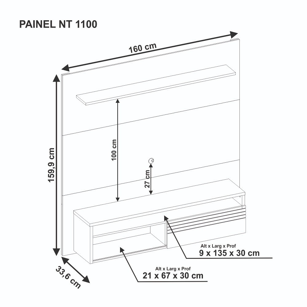 Procurando um móvel para repaginar o visual do seu ambiente? O Painel NT 1100 será a sua melhor escolha! Ele possui nichos e uma porta deslizante com detalhes frisados, que permitem organizar perfeitamente seus objetos. Características: Estrutura em MDP/MDF 1 Porta 2 Prateleiras 1 Nicho Dimensões: Altura: 159,9 cm Largura: 160 cm Profundidade: 33,6 cm Peso: 48 kg Garantia do fornecedor de 3 meses Recomendações de manutenção: Para maior durabilidade, recomenda-se que a limpeza dos móveis seja feita da seguinte forma: Nas partes externas (portas, laterais e frente de gaveta) e internas, a limpeza deverá ser feita com pano limpo e levemente umedecido em água e sabão neutro. Em seguida, deverá ser passado um pano limpo e seco.