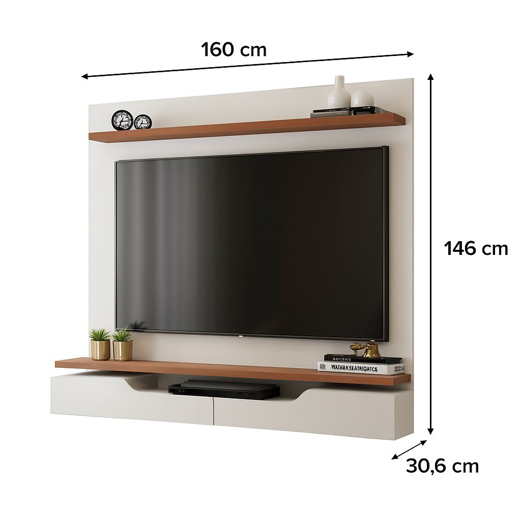 Painel para Tv até 60 Polegadas 2 Portas Basculante com Nicho e Prateleira Levi Off White/Freijó