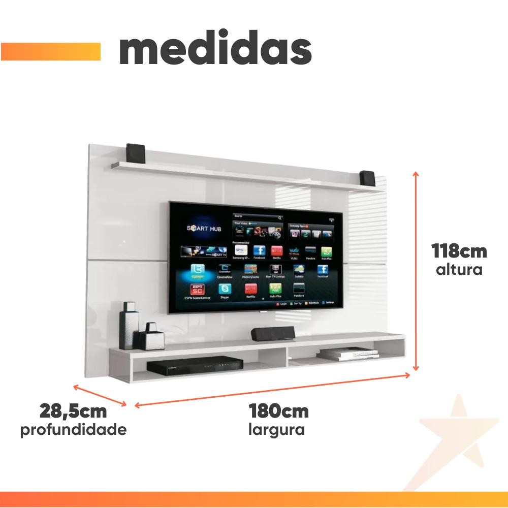 Painel Para TV Até 65 Polegadas Com Prateleira 1,80m Max Branco
