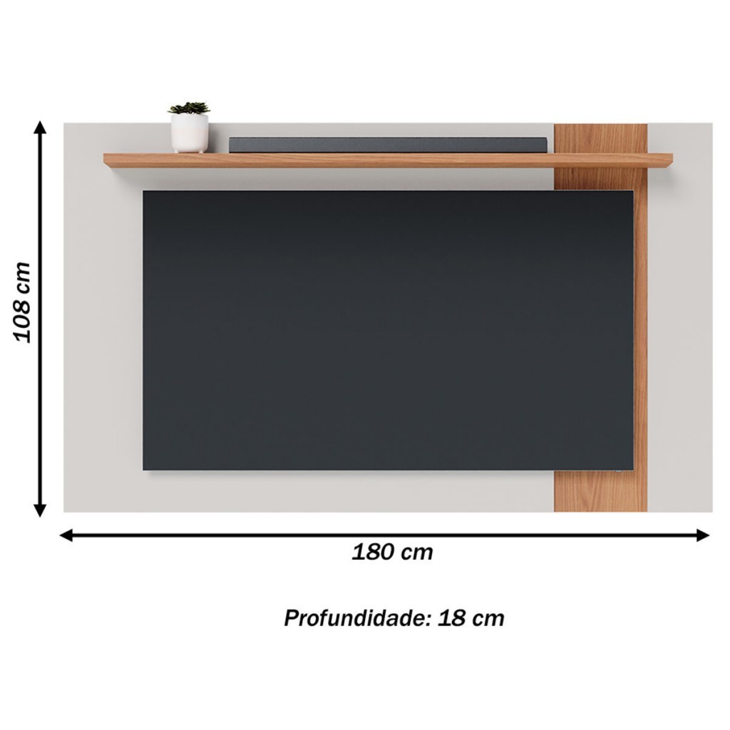 Painel para TV Até 70 Polegadas Leme 1 Prateleira Off White Matte/Freijó - Colibri