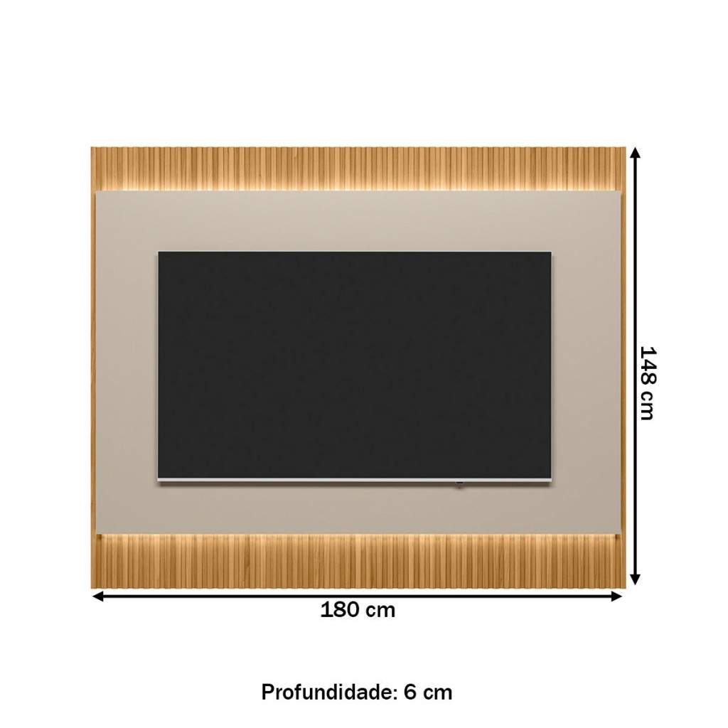 Dimensões: - Altura: 148,00 cm - Largura: 180,00 cm - Profundidade: 6,00 cm - Peso: 43,700 kg Descrição: O(a) Painel para TV Até 70 Polegadas São Paulo 1.8 Ripado com Led Tauari/Off White - Linea Brasil é produzido em MDF e MDP na escala de brilho Fosco, e possui um grau de dificuldade de montagem: Médio.Seu revestimento/acabamento é: Finish Foil e Pintura UV. Infelizmente a Loja não oferece serviço de montagem, deixamos essa informação bem clara em todas as nossas páginas de produto. Onde especificamos que os móveis chegarão desmontados, e que a montagem fica por conta do cliente. Como não oferecemos esse serviço não embutimos o mesmo no preço dos produtos, ou seja, maior economia para você! Todos os nossos móveis também acompanham o manual de montagem, e caso você queira, pode realizar a montagem você mesmo, sempre especificamos os graus de montagem dos produtos. Nos casos de grau baixo e médio, com pouco ou nenhum conhecimento, você mesmo pode efetuar a montagem, e fazer essa economia. Apenas nos graus de montagem alto, recomendamos a contratação de um montador com experiência, visto que são montagens mais complicadas. A montagem é feita com Parafusos, cavilhas e Minifix.. Este móvel é indicado para que seja utilizado no(a) Sala de Estar, dando um toque especial no cômodo de sua casa. Para que você mantenha seu produto sempre em ótimo estado, recomendamos que use apenas um pano seco ou levemente umedecido, sem o uso de quaisquer produtos abrasivos. A Loja garante aos clientes, 90 dias de garantia nos produtos, porém, recomendamos que entre em contato com o fornecedor/marca do produto, pois o mesmo(a), pode garantir um prazo maior de garantia. Lembrando ainda que: quaisquer objetos decorativos que aparecem nas imagens, não acompanham o produto. Características: - Espessura da Estrutura: 15mm - Possui Gavetas?: Não - Possui Portas?: Não - Possui Vidro?: Não - Possui Espelho?: Não - Possui Prateleiras?: Não - Possui Puxadores?: Não - Possui Ripamento?: Sim - Tipo de Ripado: Produzido com Ripas de Madeira, Formando Alto Relevo - Linha ou Coleção: São Paulo - Montagem Invertida?: Não Pode ser Montado Invertido - É frágil?: Não - Possui Nicho?: Não - Material da Estrutura: MDF e MDP - Escala de Brilho: Fosco - Possui Rodízios?: Não - Possui Pés?: Não - Tipo de móvel: Painel - Acompanha: Painel para TV + Kit Ferragens + Manual de Montagem - Acompanha Manual de Montagem: Sim - Como os Móveis Chegarão na Minha Casa: Desmontado em caixas, acompanhado de todas as peças, ferragens e manuais para montagem. - Grau de Dificuldade da Montagem: Médio - Necessita de Montagem: Sim - Sistema de Montagem: Parafusos, cavilhas e Minifix. - Garantia (dias): 90 - Indicação de Uso: Sala de Estar - Observação: Objetos decorativos que aparecem nas imagens, não acompanham o produto. - Recomendação de Manutenção: Utilizar pano levemente umedecido, seguido de pano seco. Não utilizar quaisquer produtos abrasivos. - Revestimento /Acabamento: Finish Foil e Pintura UV - Acompanha LED: Sim - Acompanha Suporte para TV: Não - Ideal para TVs até: 70 - Necessita de Fixação na Parede?: Sim - Peso Suportado no Painel: Até 40 Kg - Possui Espaço Passa Fios: Sim - Possui Vidro?: Não