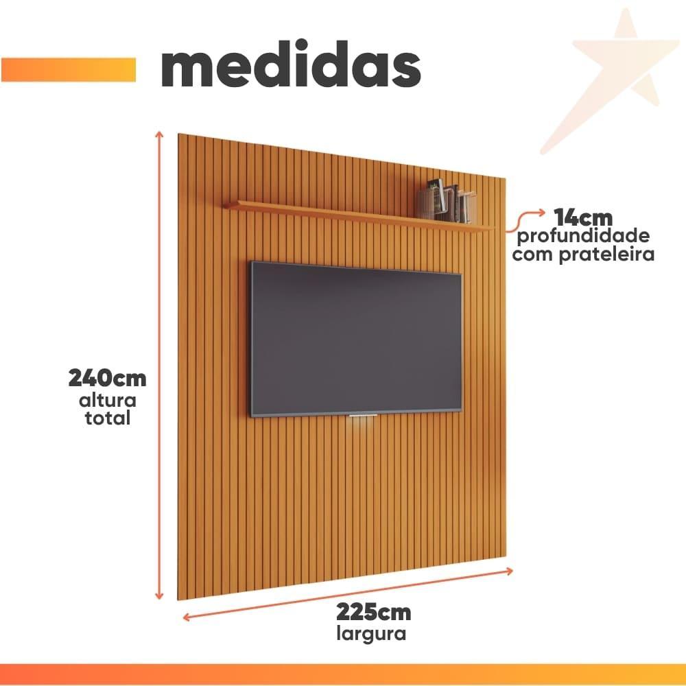 Painel para TV Até 75 Polegadas 2,25x2,40m Ripado com Prateleira Arbo Cedro EDN